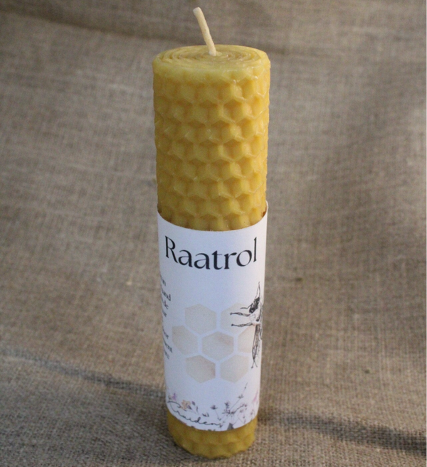 Een klassieke kaars, gerold uit een vel wasraat—zoals bijen het gebruiken om hun cellen op te bouwen. Stevig en gelijkmatig gerold, met een zachte geur van bijenwas die de ruimte vult met warmte. Deze kaars is eenvoudig, puur en vol karakter. Ideaal als geschenk voor een vriend, geliefde of jezelf. Een lichtje dat herinnert aan samenwerking, zachtheid en ambacht.