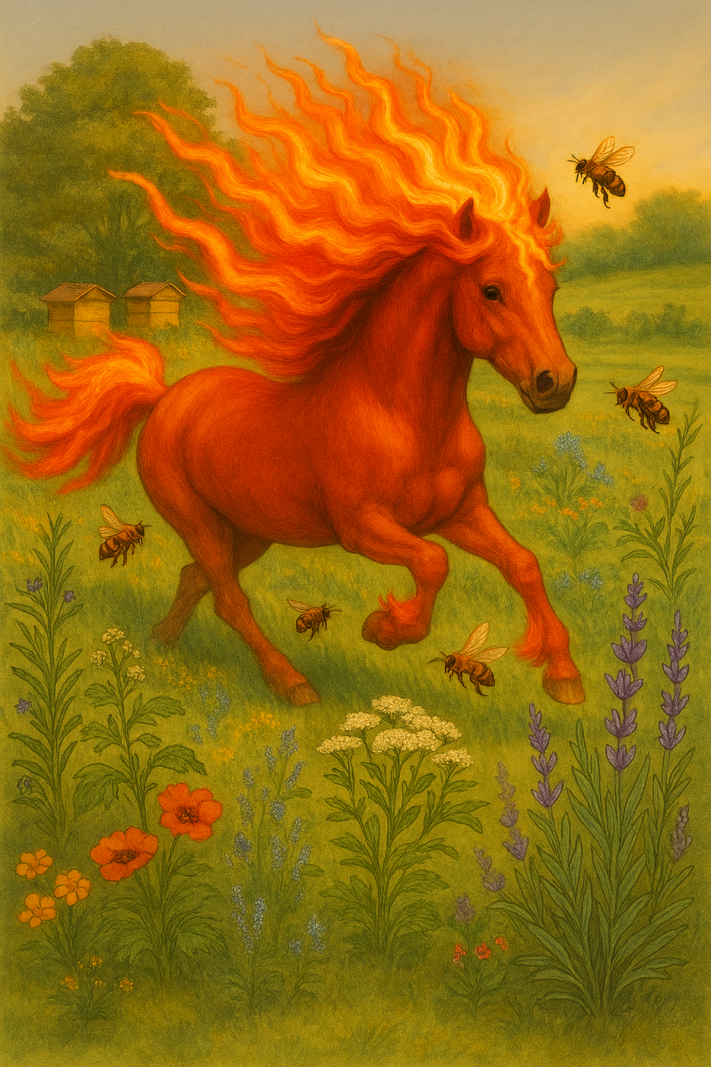 Het Vuurpaard vraagt om authenticiteit, en bijen herkennen dat feilloos. Ze vliegen alleen naar wat écht nectar draagt.